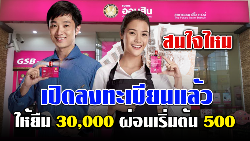 ออมสิน ให้ยืม 30,000 บาท ผ่อนเริ่มต้น 500 บาท ทุกอาชีพ ไม่ต้องค้ำ