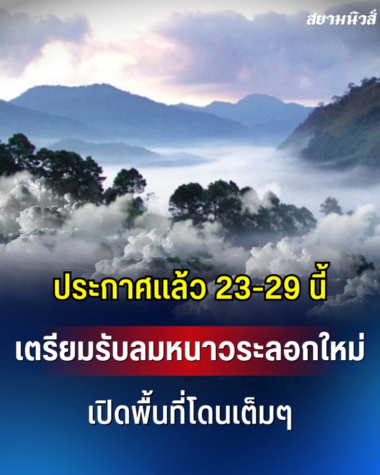 กรมอุตุฯ ประกาศเเล้ว 23-29 นี้ เตรียมรับลมหนาวระลอกใหม่ เปิดพื้นที่โดนเต็ม ๆ