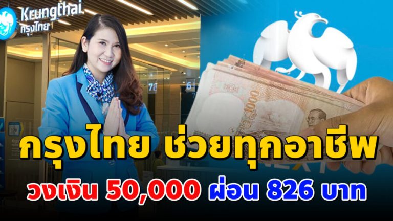 กรุงไทย สินเชื่อส่วนบุคคล ยืม 50,000 บาท ผ่อน 826 บาท/เดือน ได้ทุกอาชีพ