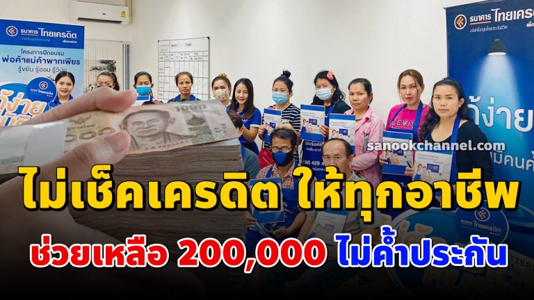 ไม่ต้องโอนก่อน ธ.ไทยเครดิต ยืมง่าย ไม่เช็คเครดิต ช่วยเหลือ วงเงิน 200,000 บาท