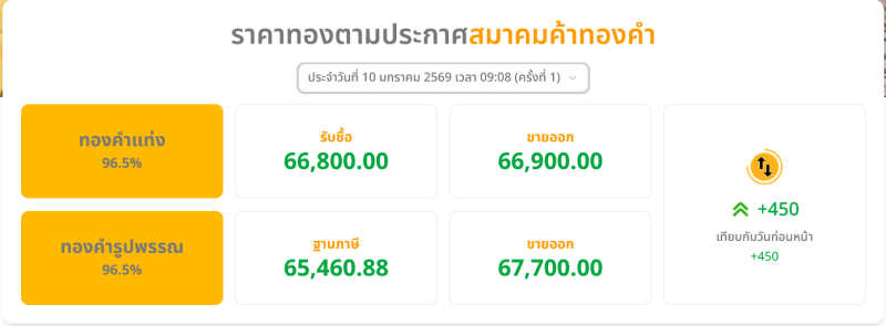 เสาร์ที่ 10 มกราคม 69 ปรับขึ้น 450 บาท