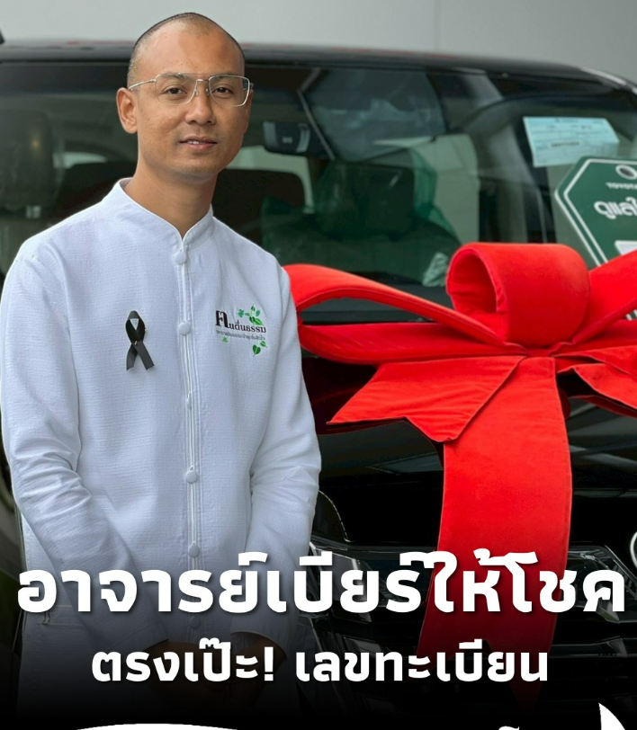 ฮือฮา รถใหม่ป้ายแดง”อาจารย์เบียร์ คนตื่นธรรม”ให้โชค ตรงเป๊ะ