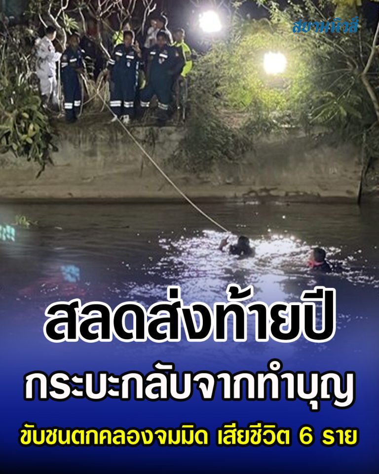 สลดส่งท้ายปี กระบะกลับจากทำบุญ ขับชนตกคลองจมมิด เสียชีวิต 6 ราย