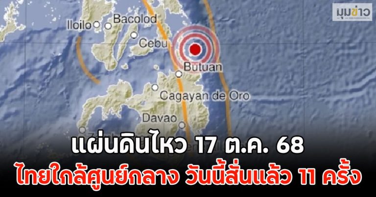 แผ่นดินไหว 17 ต.ค. 68 ไทยใกล้ศูนย์กลาง วันนี้สั่นแล้ว 11 ครั้ง
