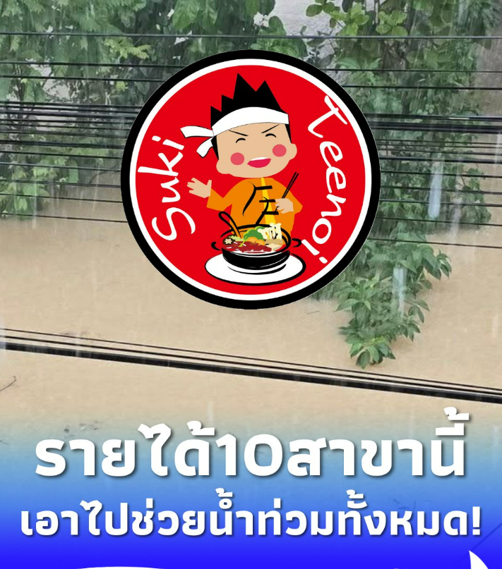 แห่สดุดี “สุกี้ตี๋น้อย” นำรายได้ 10 สาขาดังนี้ ช่วยน้ำท่วมหาดใหญ่