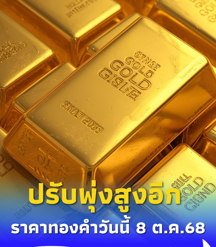 ราคาทองวันนี้ 8 ต.ค.68 เปิดตลาดครั้งที่ 1 ปรับพุ่งสูงอีก