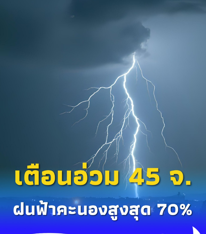 เตือน 45 จังหวัดอ่วม ฝนฟ้าคะนองสูงสุดร้อยละ 70 เตรียมรับมือ