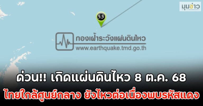 ด่วน!! เกิดแผ่นดินไหว 8 ต.ค. 68 ไทยใกล้ศูนย์กลาง ยังไหวต่อเนื่องพบรหัสแดง