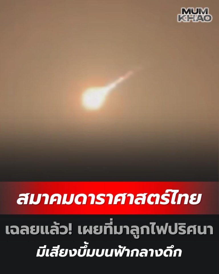 สมาคมดาราศาสตร์ไทย เฉลยแล้ว! เผยที่มาลูกไฟปริศนา มีเสียงบึ้มบนฟ้ากลางดึก